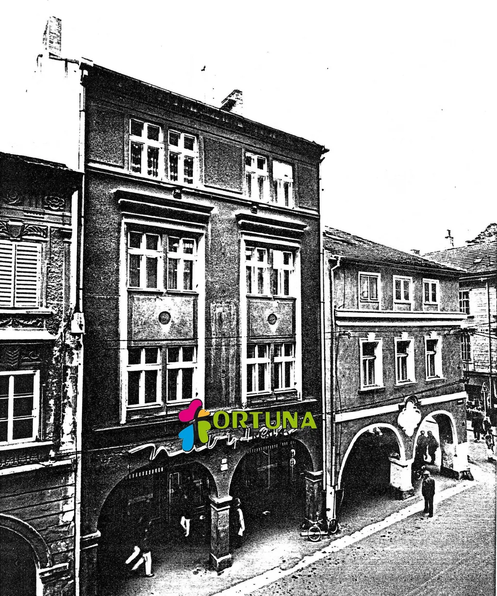 Dům byl postaven původně jako obchodní dům s jedním velkým bytem ve 4. NP a třemi pokoji v podkroví.