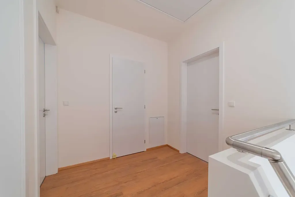 Zahrádka o rozloze 40 m². Parkovací stání pro dvě auta, což zajišťuje komfortní parkování bez zbytečného stresu. Patrový dům vyniká kvalitním zpracováním a moderním designem, který uspokojí i náročné klienty. Energetická třída je B, což přináší úspory v měsíčních nákladech na energie.