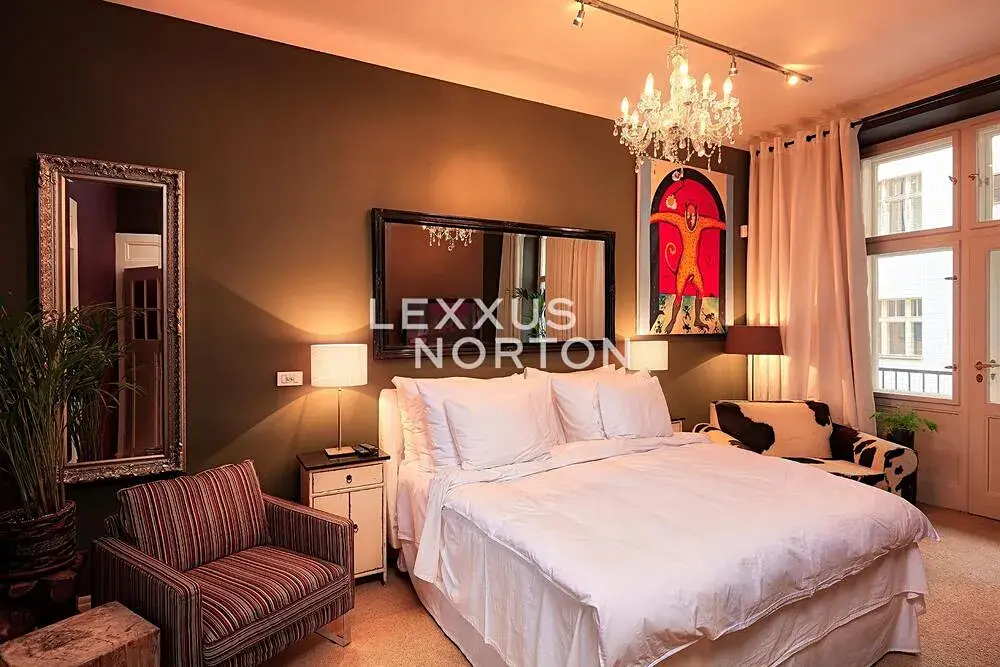 Dispozice bytu nabízí vstupní halu, prostorný obývací pokoj, luxusní designovou kuchyň s barem a jídelním prostorem, 3 ložnice a 2 koupelny. Byt lze pronajmout i nezařízený. V domě se nachází výtah a nádherné lobby.