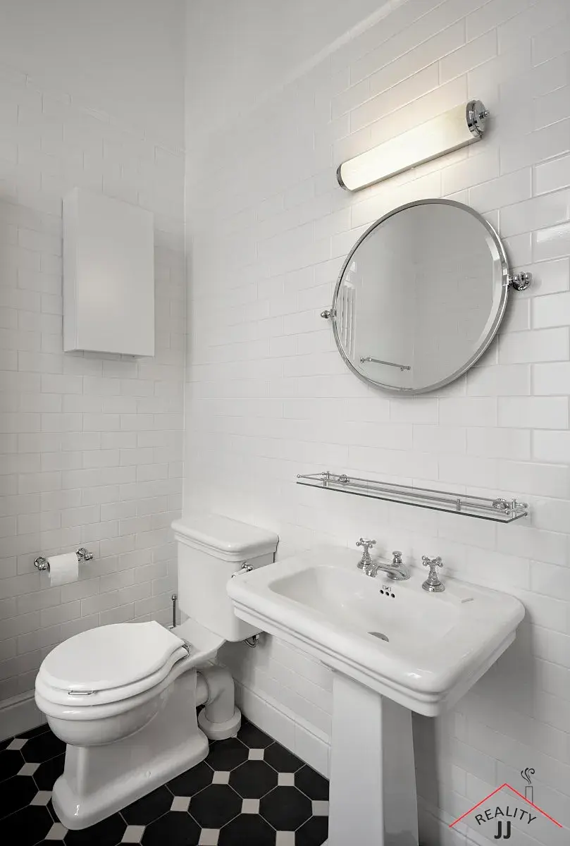 Další dva další pokoje, každý s vlastní koupelnou, směřují do klidného vnitrobloku. Jeden je zařízen jako hlavní ložnice, druhý je možno využít jako pracovnu, pokoj pro hosty nebo dětský pokoj.