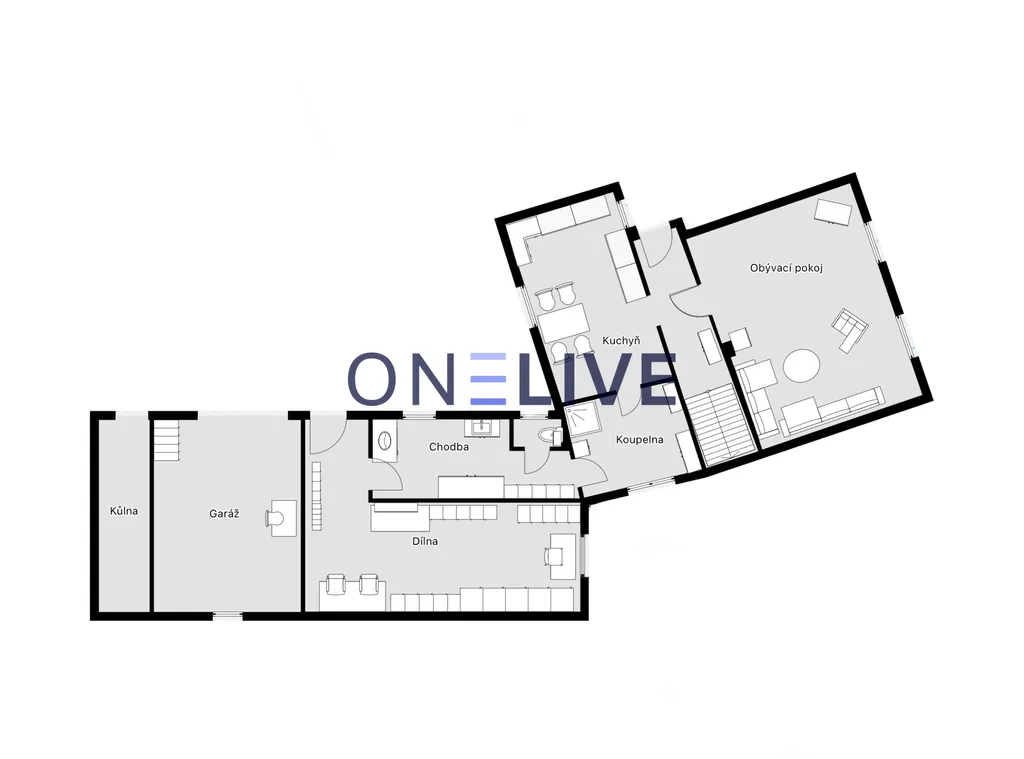 Dispozice domu je 3+1kk s užitnou plochou 125 m², přičemž k domu dále náleží: