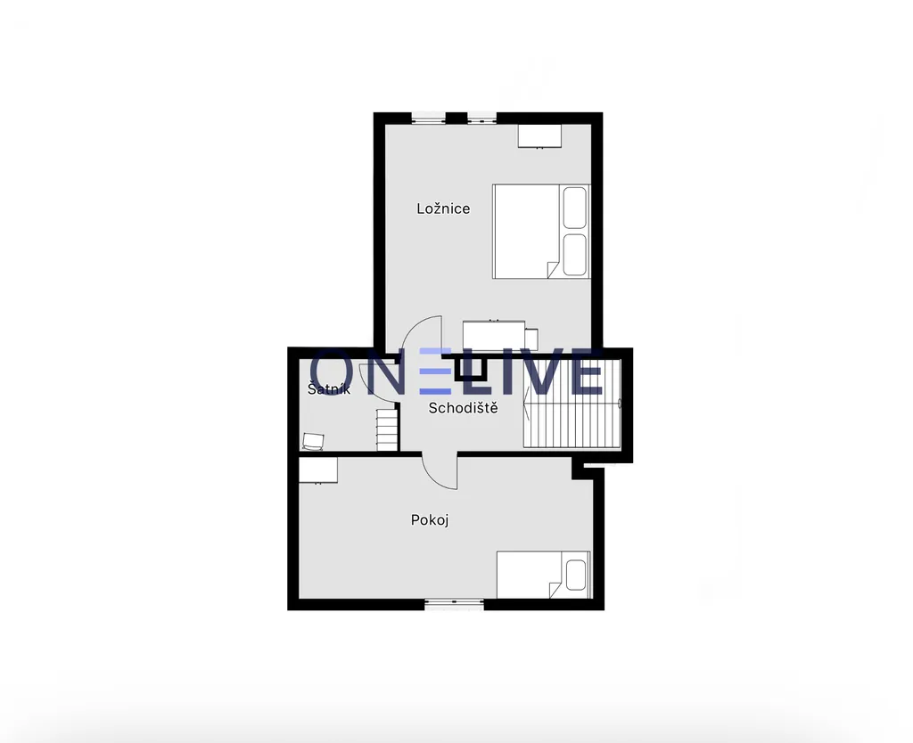 - Půdní prostor otevřený s viditelnými trámy a latěmi, což vytváří krásnou atmosféru