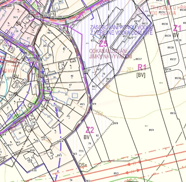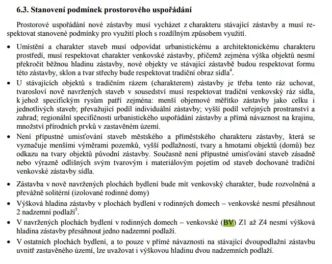 Nabízený pozemek je v platném územním plánu obce označen jako BV – plochy bydlení v rodinných domech - venkovské. Rozměry: šíře pozemku cca 25m, délka cca 81m. Přístup na pozemek je z hlavní silnice a obecní komunikace.
