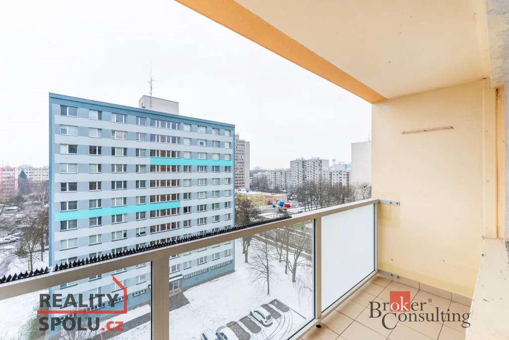 Byt se nachází v 8. patře, což zajišťuje dostatek světla a příjemný výhled. Dům je vybaven výtahem.