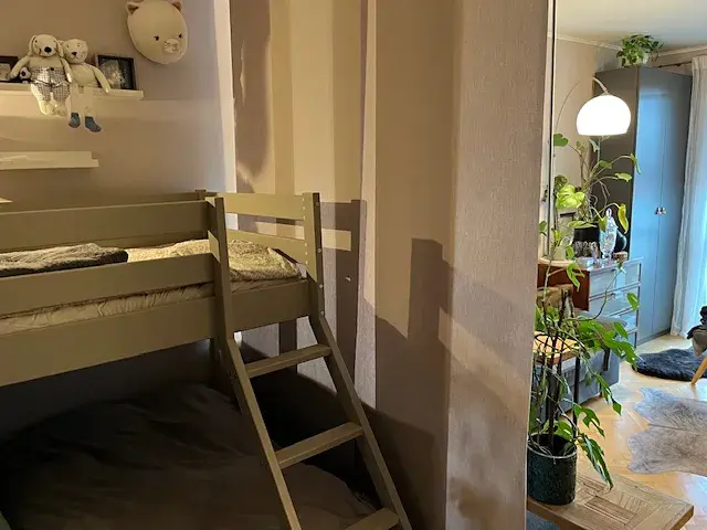 Hned po vstupu z chodby domu vás přivítá společná uzamykatelná chodba pouze pro 3 byty. Po vstupu do bytu nacházíme dostatek úložného prostoru ve 2 řadách vestavěných skříní. Kuchyň s výstupem na první lodžii je vybavena kuchyňskou linkou s vestavěnými spotřebiči (myčka, plynová varná deska, trouba, lednice s mrazákem, pračka, digestoř). Otevřený obývací pokoj s výstupem na druhou lodžii je rozdělen pojízdnou japonskou stěnou z textilie na ložnicovou a obývací část. Z kuchyně je vstup do koupelny se sprchovým koutem a toaletou. V suterénu domu je k dispozici kovová sklepní kóje. Celkově byt nabízí praktické dispoziční řešení pro jednotlivce nebo pár, ale i možnost na investici.