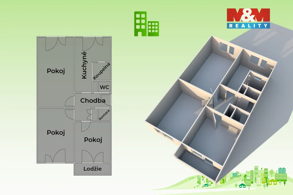 Exkluzivně nabízíme k prodeji prostorný a prakticky řešený byt o dispozici 3+1 s užitnou plochou 74,26 m² včetně sklepa + zasklená lodžie o výměře 4,33 m². Byt se nachází v 1. vyvýšeném nadzemním podlaží bytového domu. Dispozice bytu je velmi příjemná a funkční – všechny místnosti jsou samostatně přístupné z prostorné vstupní chodby s praktickou komorou a úložnými prostory. Byt nabízí obývací pokoj, dvě samostatné ložnice a samostatnou kuchyni s dostatkem místa pro jídelní kout. K dispozici je koupelna s vanou (rekonstrukce proběhla před několika lety) a samostatné WC. Z jedné z ložnic je vstup na zasklenou lodžii. Velkou výhodou je lokalita s kompletní občanskou vybaveností v docházkové vzdálenosti – školy, obchody, služby i centrum města jsou dostupné během několika minut. Parkování je možné přímo před domem. Byt se prodává včetně vybavení zachyceného na fotografiích. V případě zájmu o více informací nebo domluvení prohlídky nás neváhejte kontaktovat.