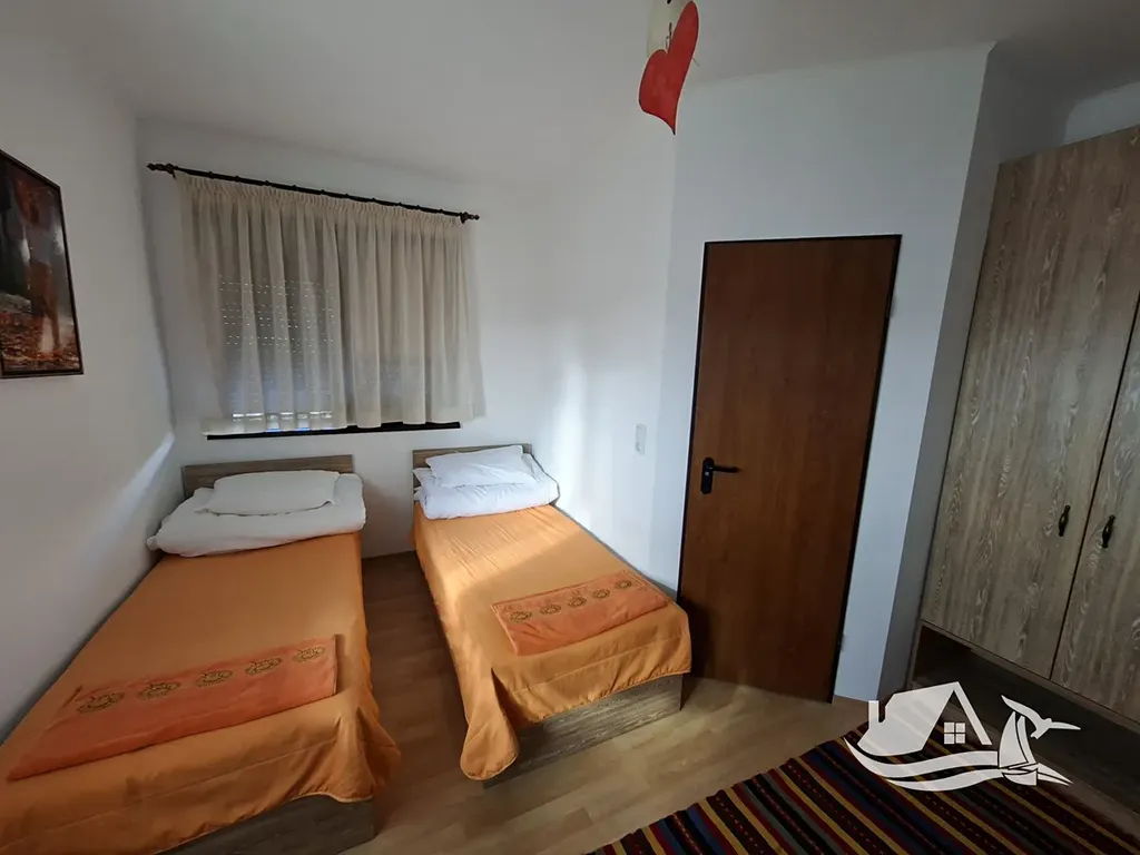 Dům nabízí pět samostatných pokojů, každý s vlastním sociálním zařízením, což zajišťuje dostatek soukromí a komfortu. Součástí je plně vybavená kuchyně a jídelna s krbem, který vytváří útulnou atmosféru zejména v chladnějších měsících. Vytápění je řešeno radiátory a dům je doplněn solárními panely, což přispívá k efektivnímu provozu a nižším nákladům.