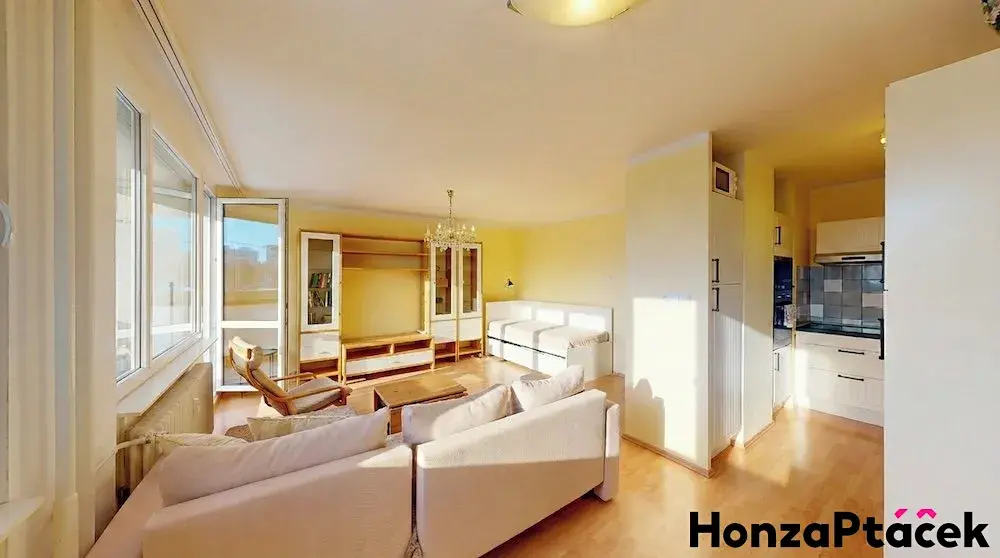 Nabízím ke koupi světlý byt 1+kk, umístěný ve 4. patře panelového domu v pražských Bohnicích. Součástí bytu je prostorná zasklená lodžie o velikosti 10,3 m², orientovaná na jih do klidného vnitrobloku, a sklepní kóje (2,2 m²) v přízemí domu.