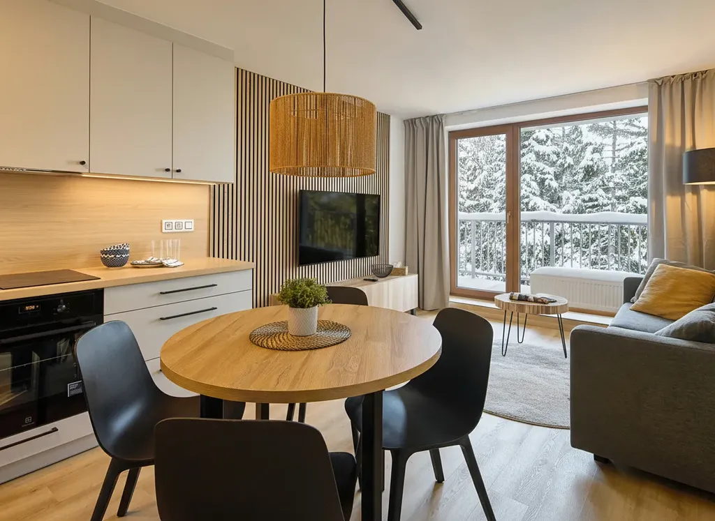 Po dlouhé snídani ve vlastní kuchyni stačí sejít do lyžárny nebo kolárny, nazout vyhřáté lyžáky nebo pevné boty, nasednout na kolo nebo vyrazit po značených trasách rovnou od dveří – na první ranní manšestr nebo hřebenovou túru.