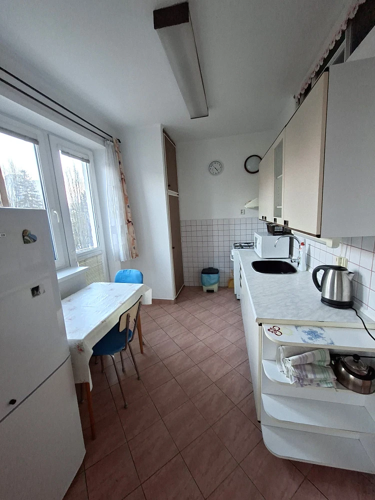 Dovolujeme si Vám nabídnout k pronájmu byt 3+1 v osobním vlastnictví v Olomouci, ul. Foerstrova. Tento panelový byt se nachází ve 3.NP (2.patro) bez výtahu,je dobrém stavu, čistě vymalovaný a uklizený, zařízený starším nábytkem. Užitná plocha bytu činí 74 m², což zajišťuje dostatečný prostor pro pohodlné bydlení.