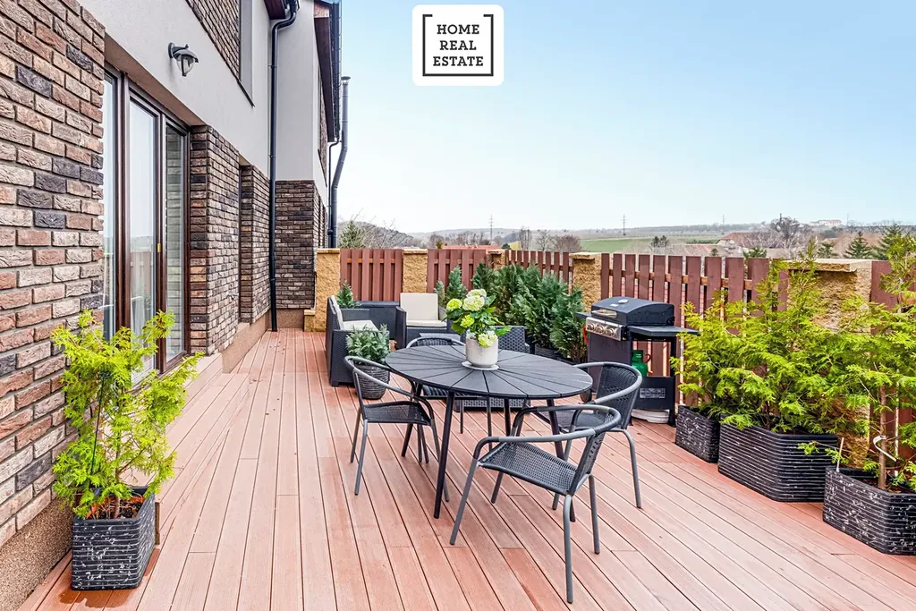 Tento rodinný dům o dispozici 4+KK se nachází na pozemku o celkové výměře 201 m² a zahrnuje parkovací stání před domem, zahrádku o velikosti přibližně 20 m² a terasu o rozloze cca 50 m².