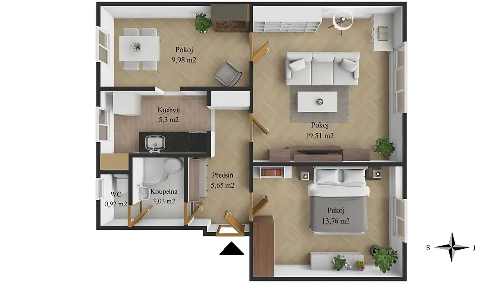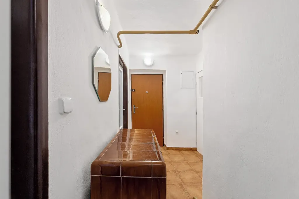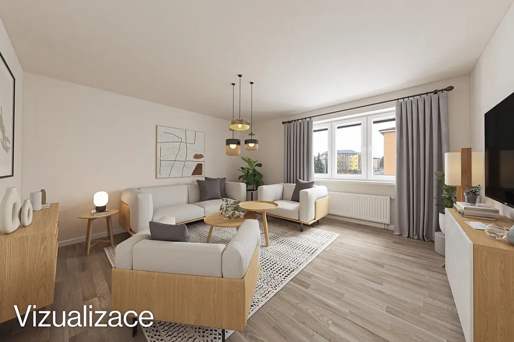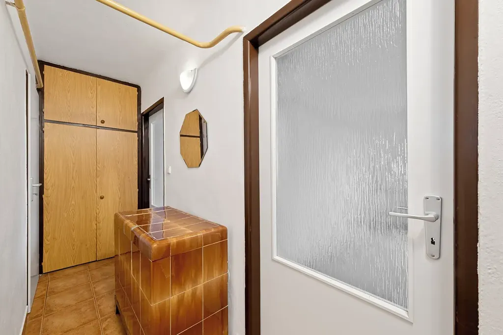 Dispozice bytu je přehledná a funkční, jednotlivé pokoje na sebe logicky navazují a působí světlým dojmem. Obývací pokoj nabízí dostatek prostoru pro každodenní život, ložnice klid pro odpočinek a třetí pokoj lze využít jako dětský pokoj nebo pracovnu. Koupelna prošla rekonstrukcí před 11 lety, zbytek bytu je před kompletní rekonstrukcí, což umožňuje novému majiteli upravit si bydlení zcela podle vlastních představ.