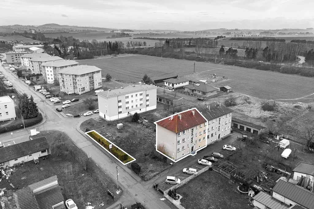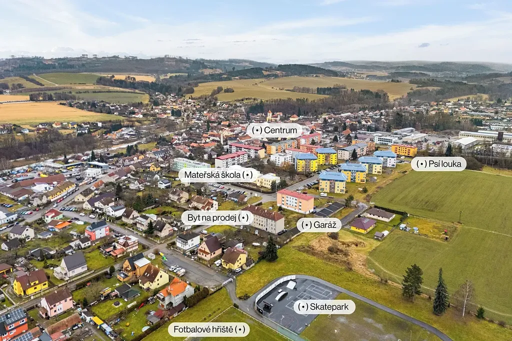 Součástí je sklepní zázemí o celkové výměře 8 m², vlastní garáž přímo u domu o velikosti 16 m² a možnost pohodlného parkování také na místech před domem. Příjemným benefitem je vyčleněná část zahrady přibližně 127 m² užívaná na základě podílu na pozemku, která nabízí prostor pro posezení, malé pěstování nebo místo pro děti.