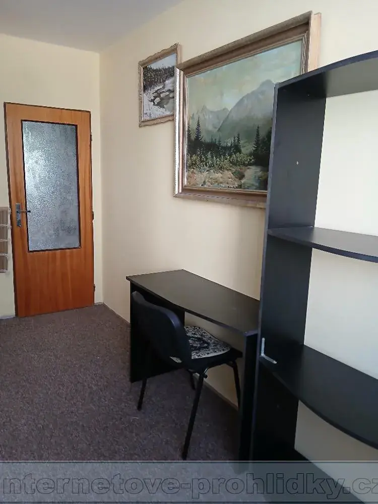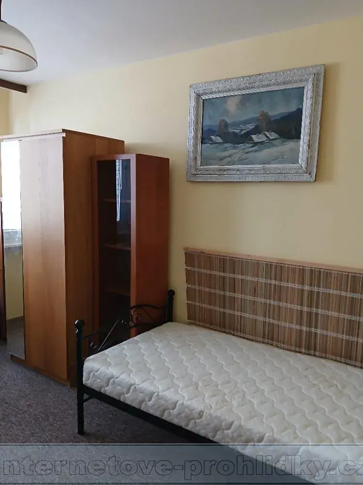 22m2, samostatný neprůchozí pokoj s lodžii v panelovém domě s výtahem, 4. patro, plně zařízený s možností úklidu. K dispozici vlastní WC a koupelna. Před domem bezplatné parkování. V bytě jedna osoba - žena, která využívá pouze kuchyň a obývací pokoj. Nájemné 12000, vratná kauce i provize ve stejné výši - pouze pro muže věk 45 -60 let.