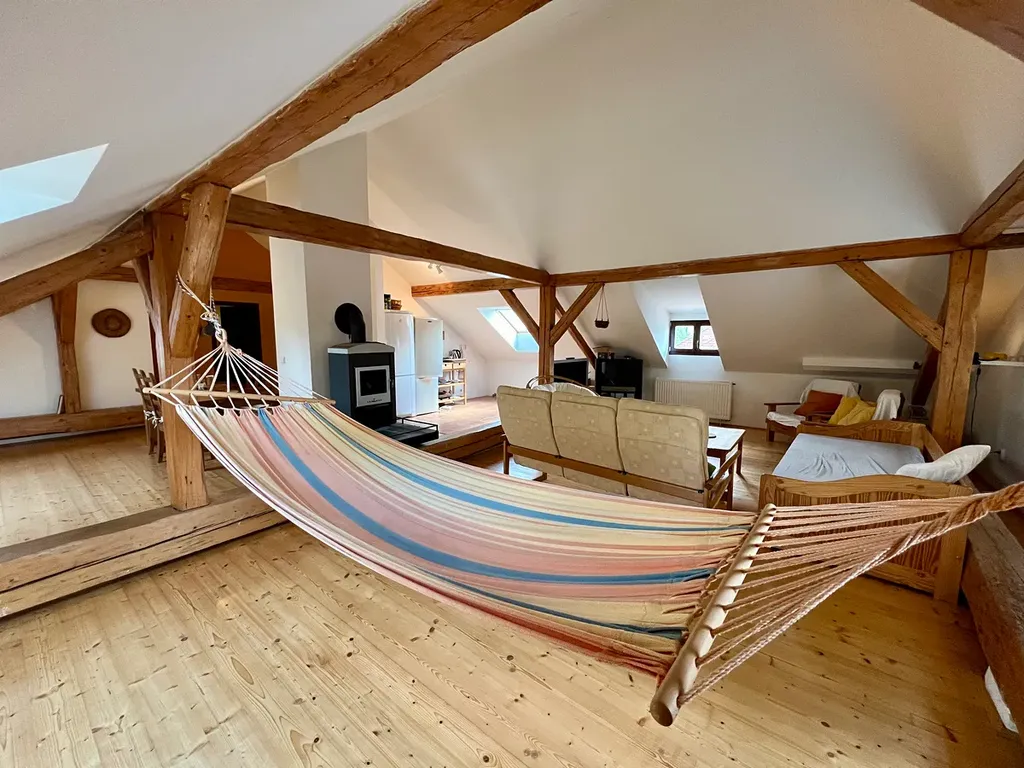 Druhé patro tvoří velký podkrovní apartmán s dominantním obývacím pokojem a přípravou na kuchyňský kout, 2 dvoulůžkové ložnice a koupelna. Při provozu penzionu je toto ideální velkorysý prostor pro majitele a jeho rodinu.