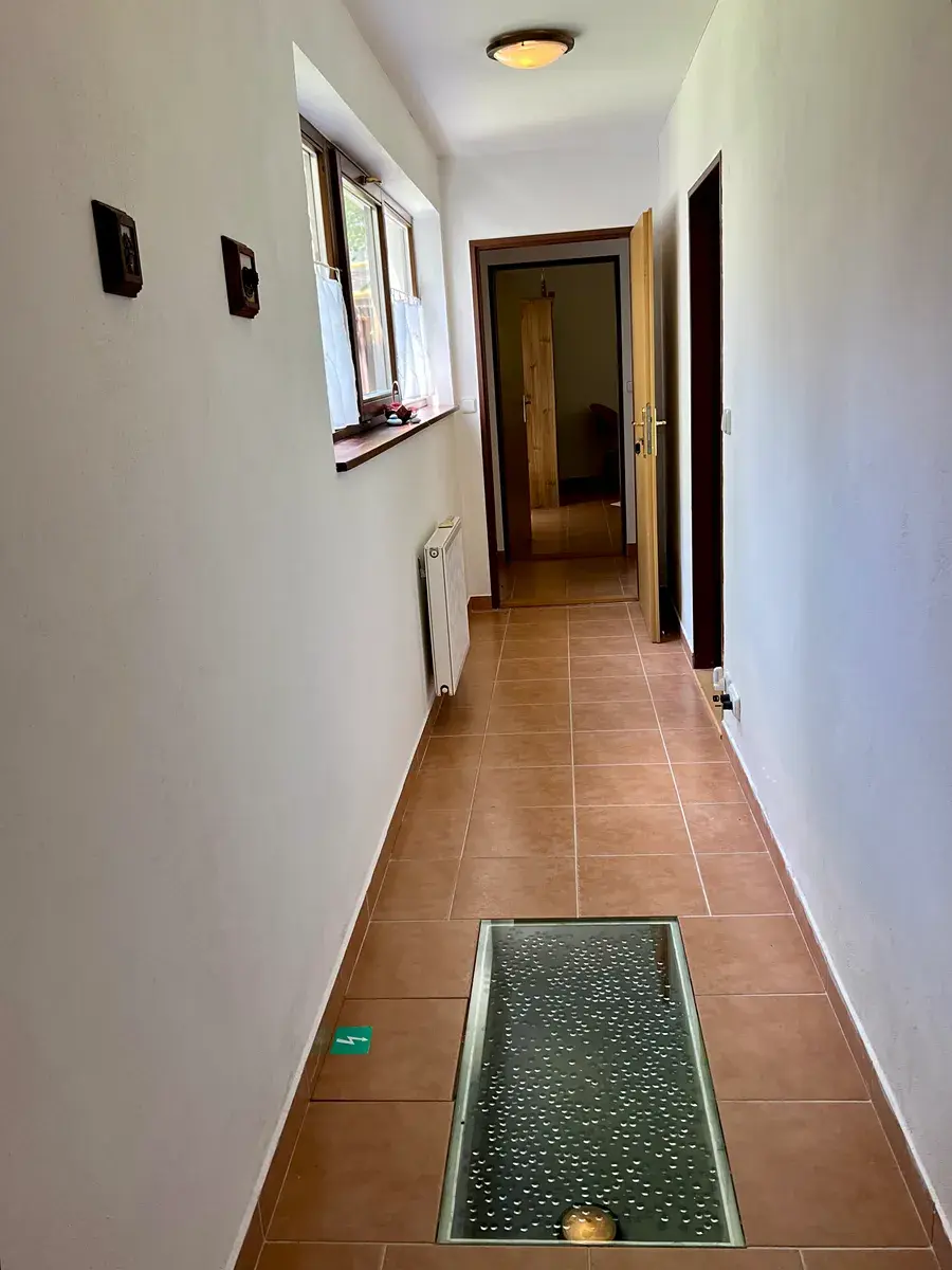 V přízemí je prostorná společná kuchyně s kuchyňskou linkou a spotřebiči AEG, chodba, 3 technické místnosti, 2 samostatná WC a 3 ložnice s vlastní koupelnou (2 dvoulůžkové a 1 čtyřlůžková).