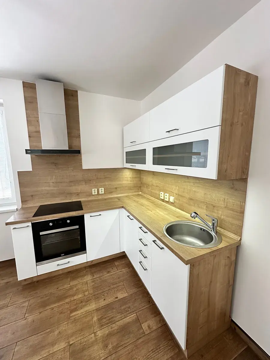 Dispozice: předsíň 8.16 m2, obytný prostor 15.22 m2, kuchyňský kout 9.46 m2, koupelna a WC 4.94 m2. Byt je atypický. Měsíční náklady na provoz bytu (1 osoba): holé nájemné 7.550 Kč, osvětlení spol. prostor 50 Kč, anténa 50 Kč, úklid 150 Kč, vytápění 1.000 Kč teplá voda 300 Kč, studená voda 200 Kč, užitková voda 100 Kč.