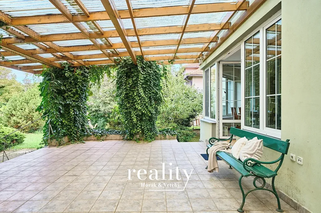 Na zahradě se nachází zastřešený bazén (zde je nutná rekonstrukce) a větší zahradní domek, který byl používán jako ateliér, můžete v něm ubytovat hosty nebo zde vybudovat saunu, či posilovnu.