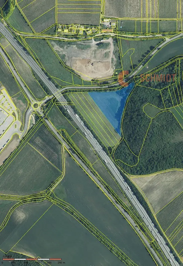 Pozemek se nachází v těsné blízkosti dálnice D2 a silnice E65