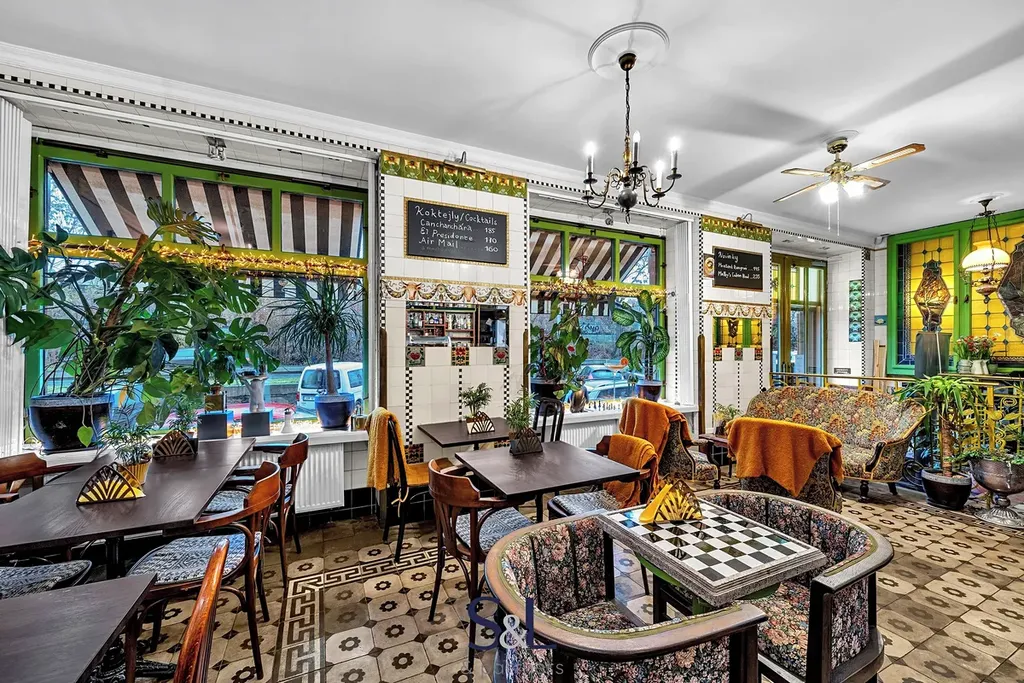 The café already operates in two modes — daytime and evening — and offers further potential to expand into a stronger gastro, cocktail, or cultural concept.