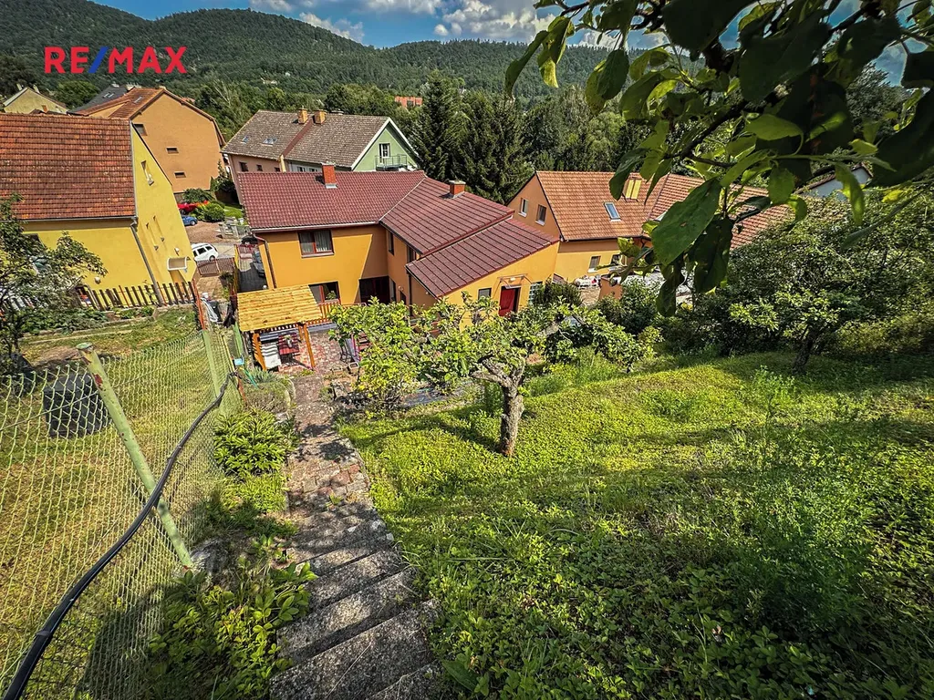 Zahrada o 451 m² je terasovitě členěná do svahu, s altánem, užitkovými i odpočinkovými kouty a vlastní studnou. Parkování přímo u domu s možností jednoduchého rozšíření – praktické jak pro rodinu, tak pro případné příchozí klienty.