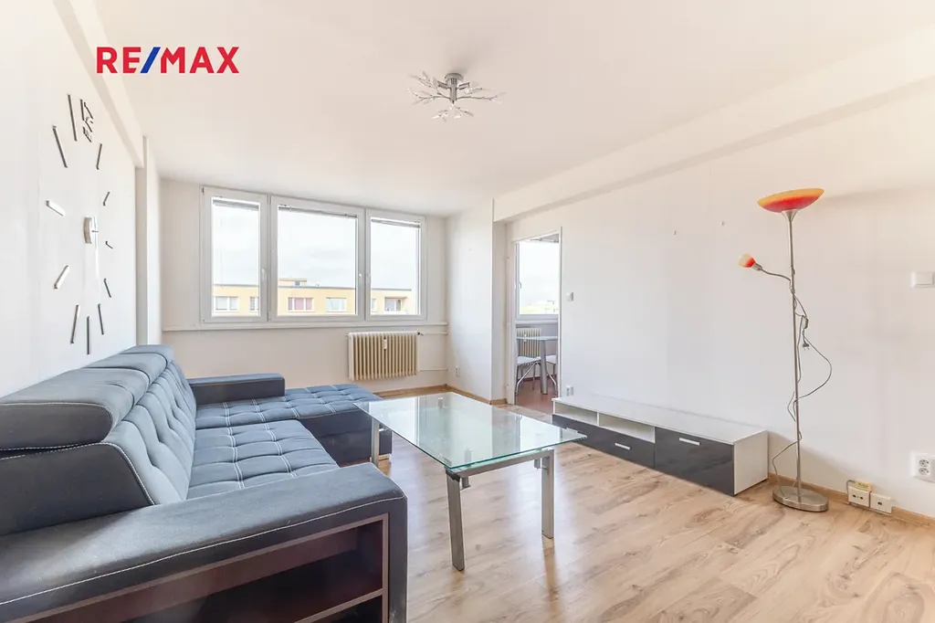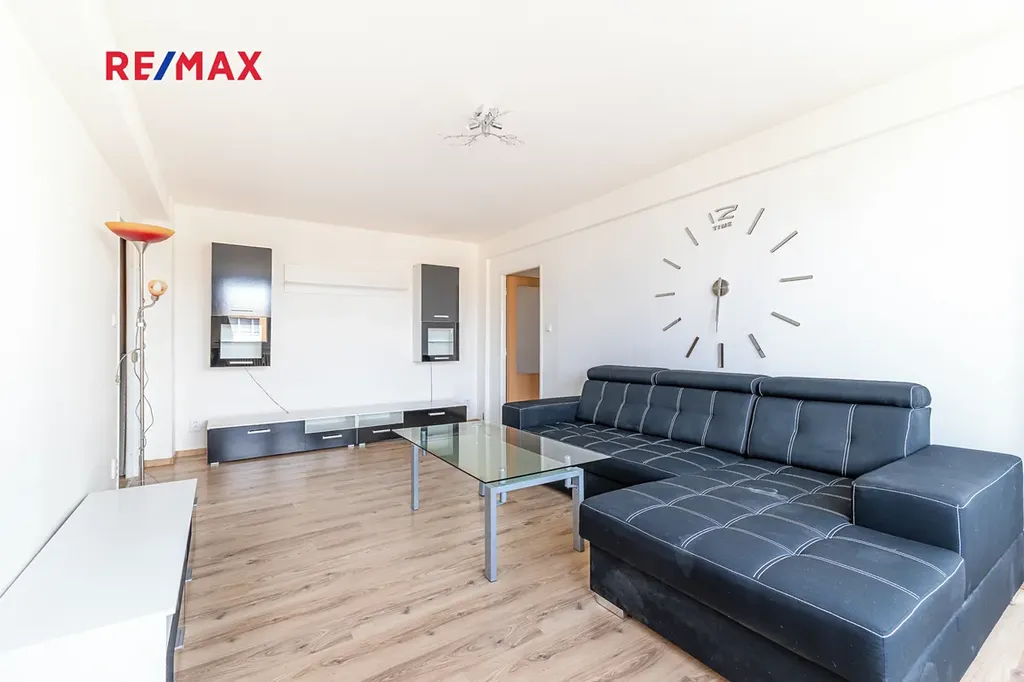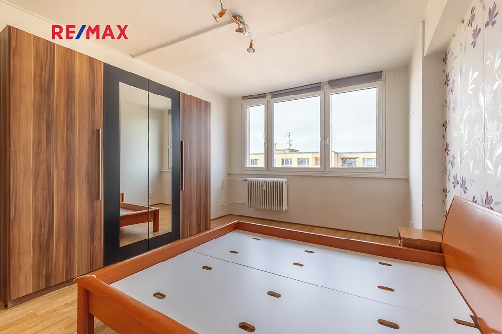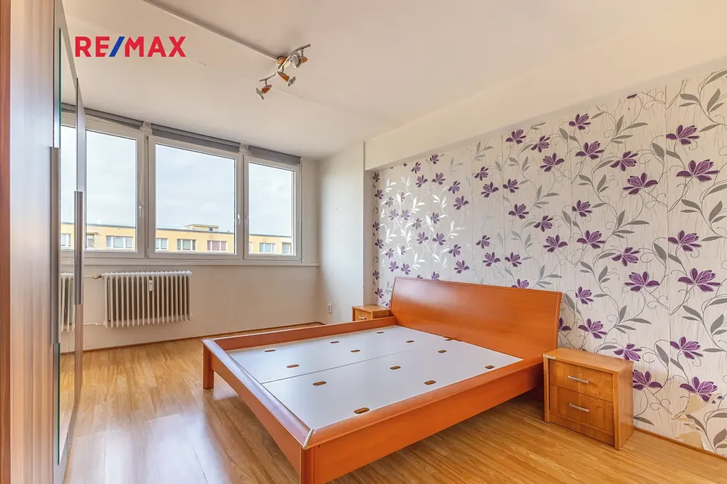 Nabízíme světlý a prostorný byt 3+1 o podlahové ploše 88,7 m², který se nachází v 9. patře kompletně revitalizovaného panelového domu. Byt je velmi dobře řešený, má 2 neprůchozí pokoje, prostorný obývací pokoj, kuchyňský kout a lodžii o výměře 3 m² přístupnou z jedním z pokojů. K bytu náleží také 2 sklepní kóje (celkem 4 m²). Dům prošel kompletní revitalizací - zateplení, plastová okna, společné prostory včetně kamerového systému a výtahu.