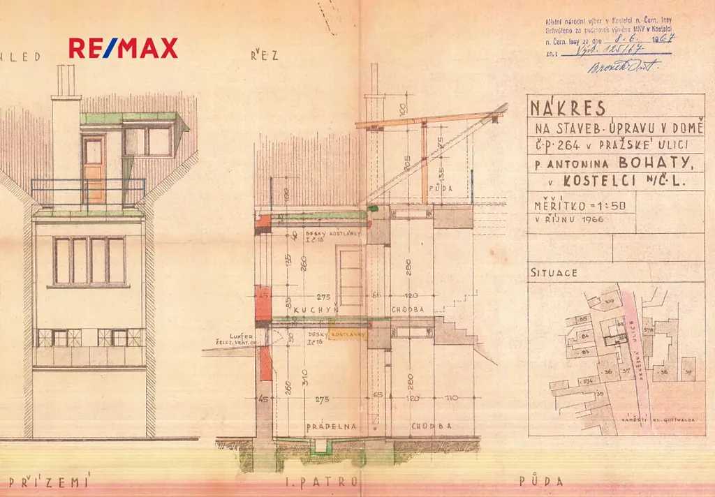 + sklep a půdní prostory. Výměra vnitřních prostor je orientační, překreslené půdorysy budou do inzerátu ještě dodatečně vloženy.