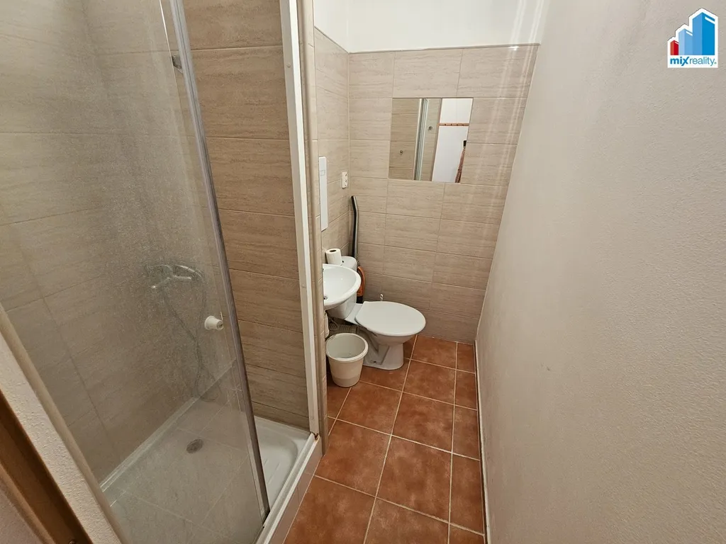 Byt o celkové ploše 25 m² se nachází v osmém nadzemním podlaží panelového domu s výtahem.