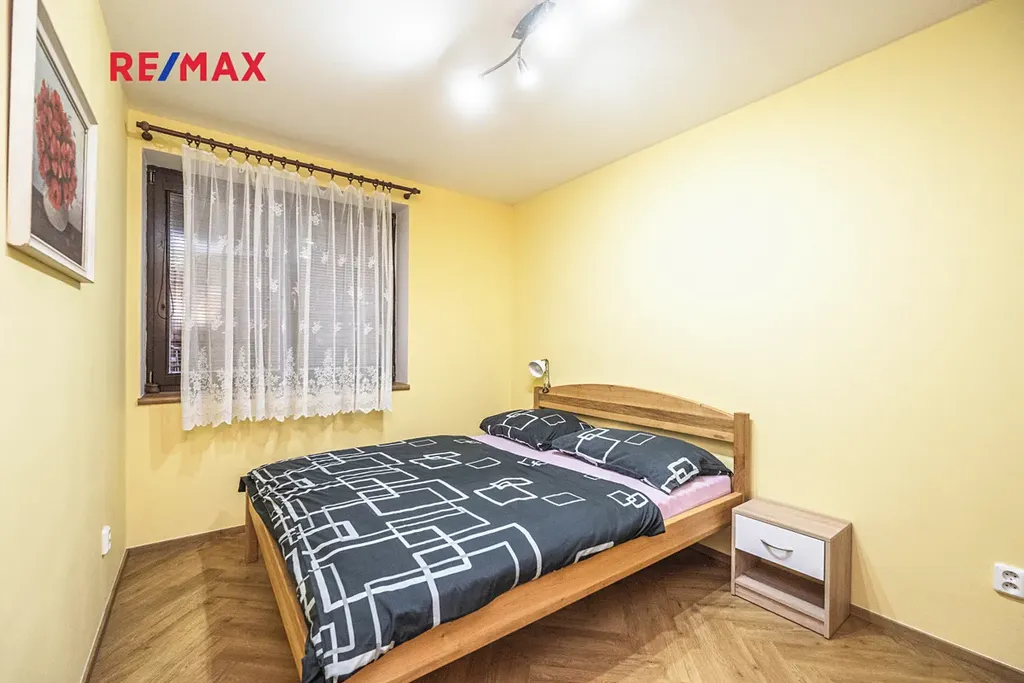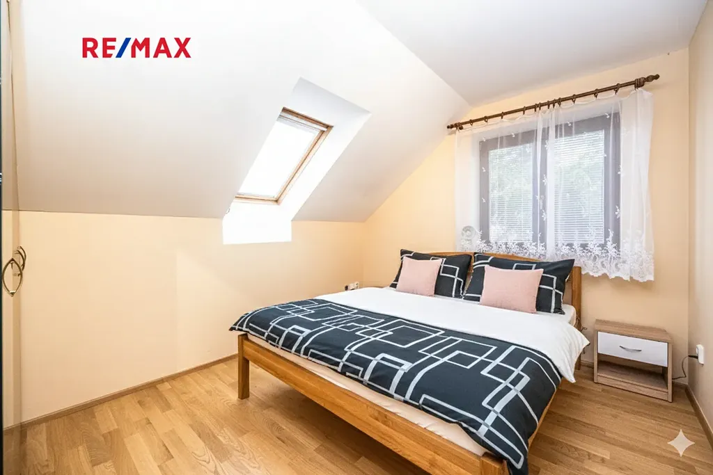 tři ložnice (2× manželská postel, 1× plnohodnotné trojlůžko vhodné pro děti), koupelna s vanou, samostatné WC