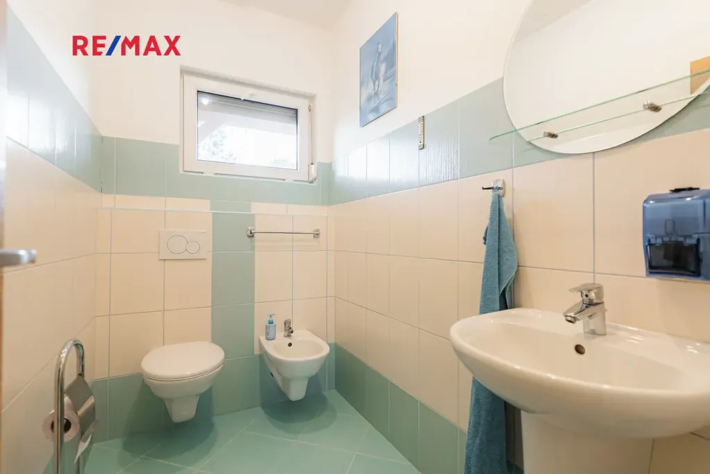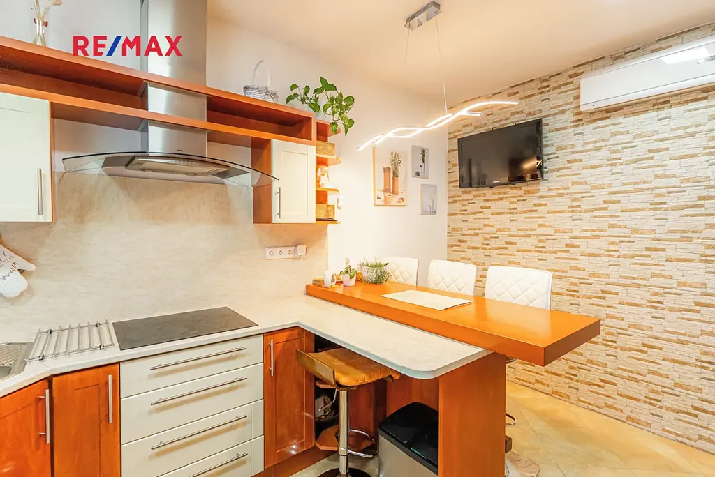 Dispozice domu je 3+1 s užitnou plochou 169 m². Kuchyň (12,35 m²) je samostatná, vybavená vestavěnými spotřebiči a barovým pultem. Dva prostorné pokoje (13 a 18 m²) poskytují dostatek místa pro rodinu, koupelna (10,5 m²) nabízí vanu, sprchový kout. V koupelně je podlahové topení. Samostatné WC s bidetem, technická místnost a praktická vstupní chodba s vestavěným botníkem dělají dům velmi funkčním.