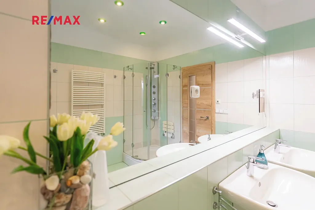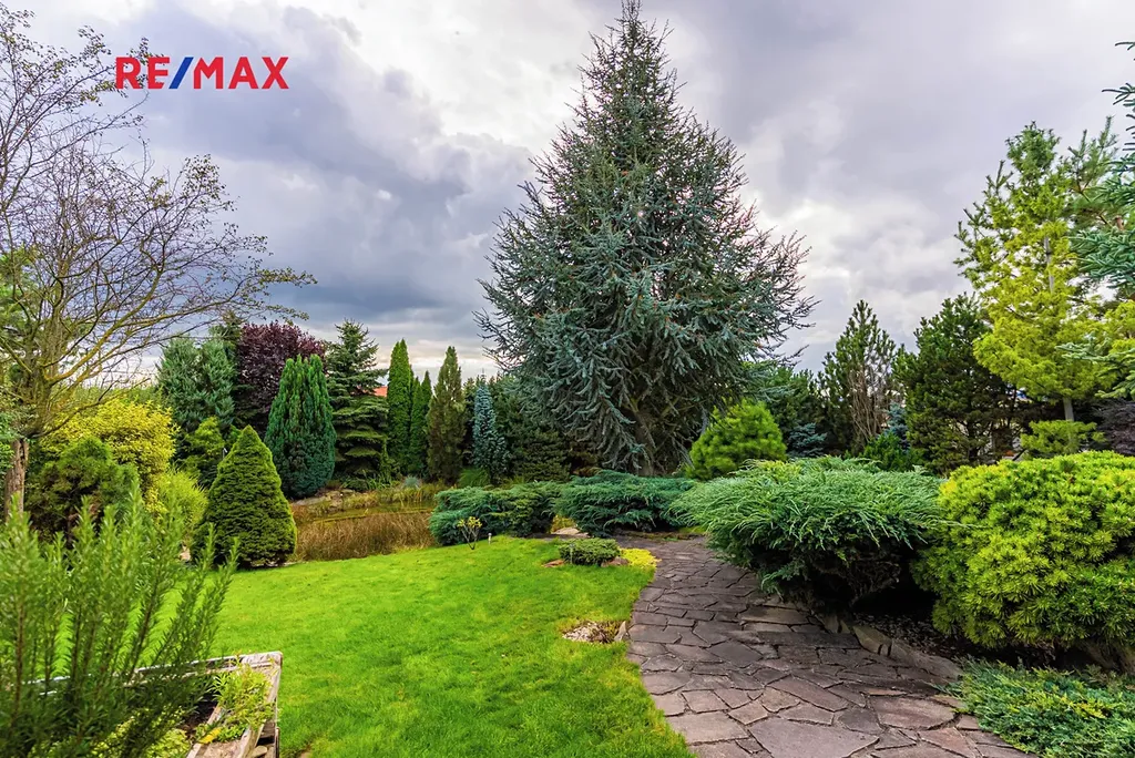 Největší předností je zahrada orientovaná na jihozápad, kde si vychutnáte slunce od odpoledne až do večera. Dominantou pozemku je velké koupací jezírko – biotop (cca 17 × 4 m), které slouží nejen k osvěžení, ale i k plavání. Atmosféru doplňuje finská sauna, venkovní gril a vzrostlé stromy – cedr, borovice, smrk i jedle. Na zahradě je automatické zavlažování a vlastní studna.