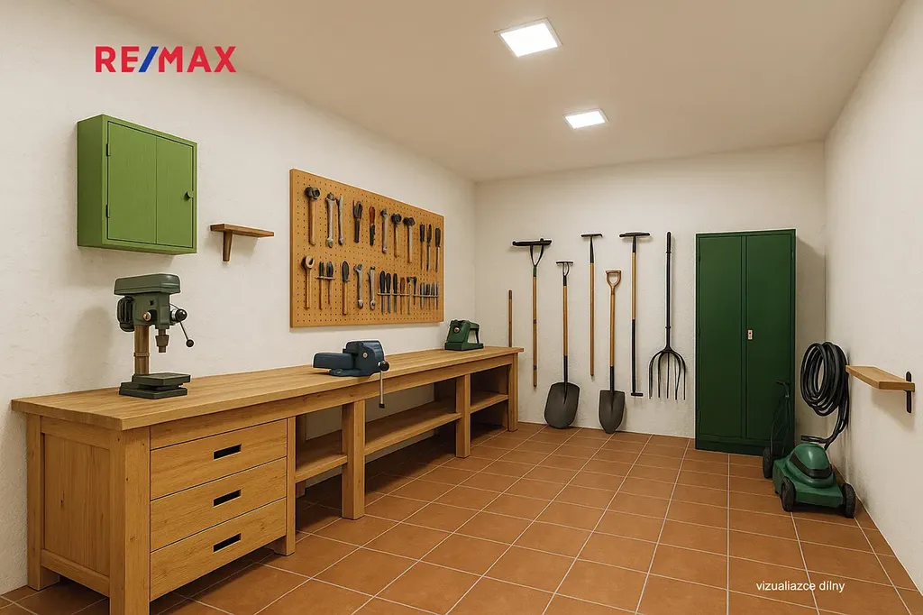 Vedlejší stavbu (vemínek) o dvou nadzemních podlažích a půdou o zastavěné ploše 50 m2 lze v případě potřeby vícegeneračního bydlení rekonstruovat, a rozšířit tím dům o další bytovou jednotku se samostatným vchodem. Případně dál využívat pro dílnu, sklad, zázemí firmy, nebo ateliér.