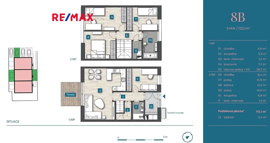Každý dům nabízí do detailu promyšlenou dispozici 5+kk - 4 samostatné pokoje, obývací pokoj s kuchyňským koutem, 2 koupelny a technickou místnost. Venku posedíte na terase či na zahradě a před domem zaparkujete dva své vozy.