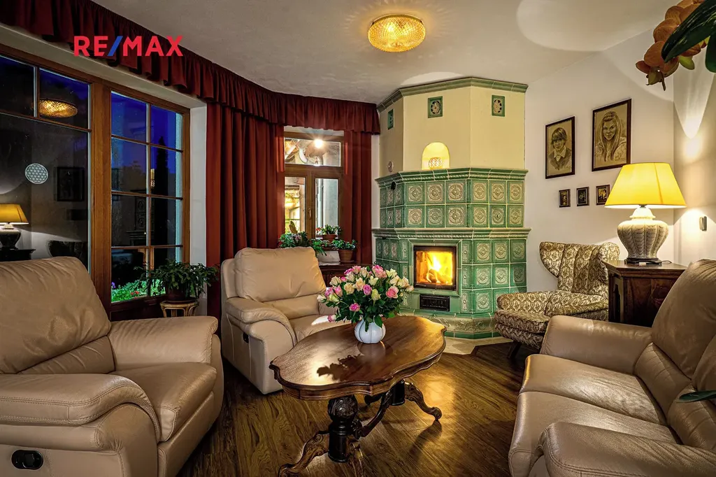 Hlavní místností prostorného rodinného domu je obývací pokoj s kuchyní a s krásnými kachlovými kamny, která zejména v chladných měsících vybízí k příjemného posezení za zvuku praskajícího ohně. Z obývacího pokoje je pak nádherný výhled a přímý vstup do pohádkové zahrady.