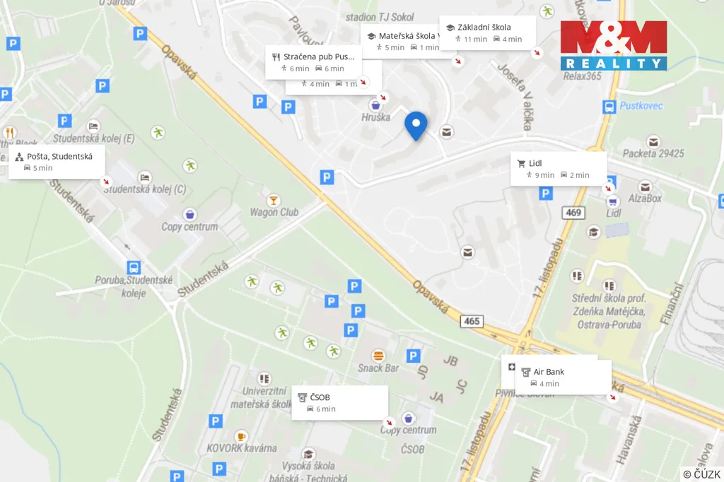 Velkou výhodou je klidné okolí s dostatkem zeleně a zároveň výborná dostupnost do centra města i občanská vybavenost v dosahu chůze.