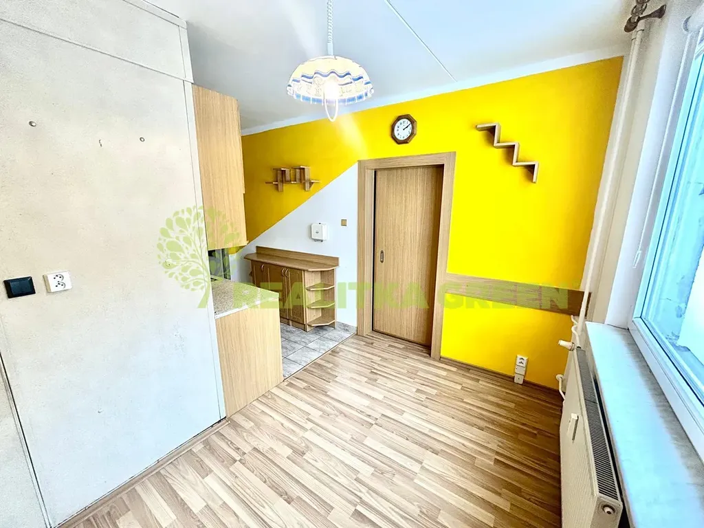 Dispozičně: prostorná vstupní chodba se šatnou, kuchyň s jídelním koutem, kuchyňská linka s plynovým sporákem a elektrickou troubou, obývací pokoj se vstupem na lodžii odkud je krásný výhled na město. Ložnice a pokoj, který lze využít jako dětský pokoj nebo pracovnu jsou situovány na západní stranu s výhledem do zeleně. Koupelna s vanou a samostatné wc.
