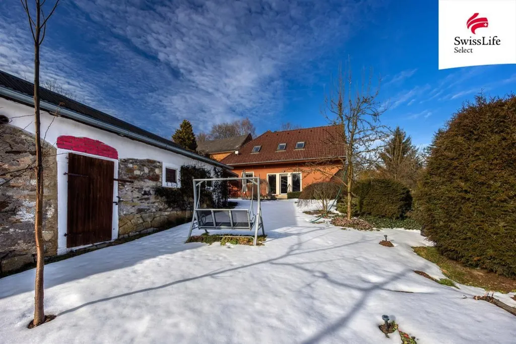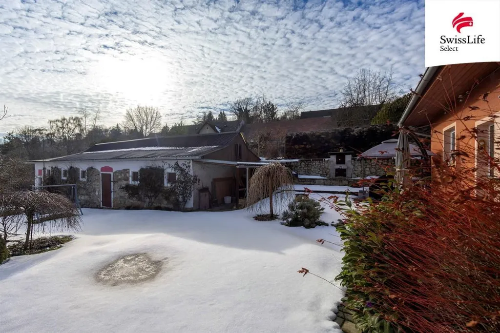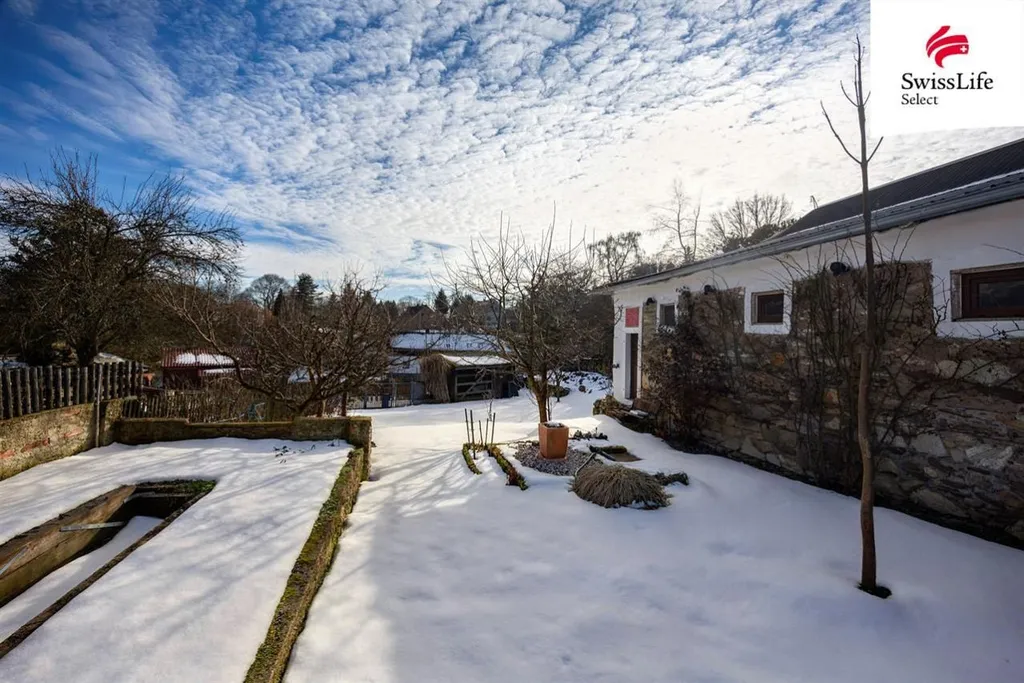 Vedlejší budova bývalého chlíva z precizně skládaného kamenného zdiva je jako stvořená například pro umělecký ateliér. Krom toho nabízí i velké zázemí pro dílnu, uskladnění zahradního náčiní, výpěstků, dřeva, popřípadě zde nějaký čtyřnohý spolubydlící najde svůj prostor. Zahrada je mírně svažitá, orientovaná na jih - slunce je tu dostatek. Pozemek je výborně udržovaný, najdete zde s láskou opečovávané květiny, keře i ovocné stromy. Vymazlená terasa a posezení s venkovním grilem s udírnou navazují na obývací pokoj s kuchyní.