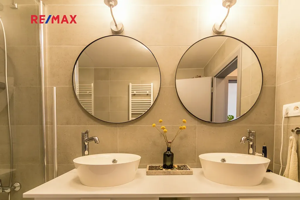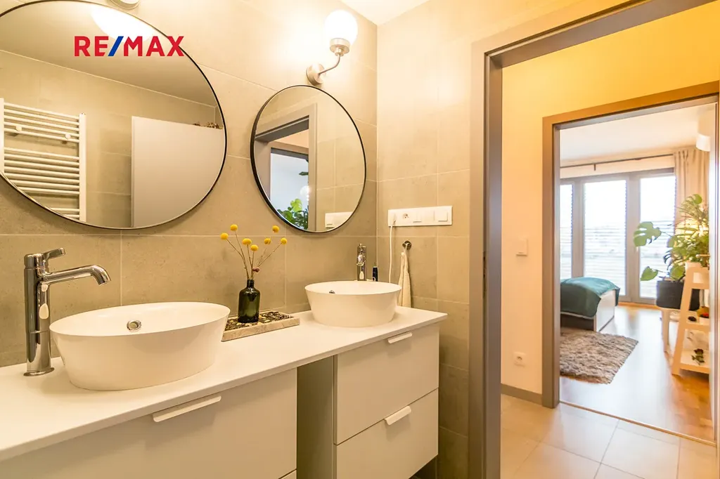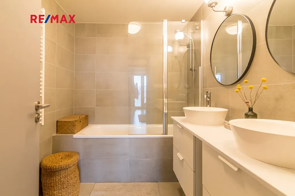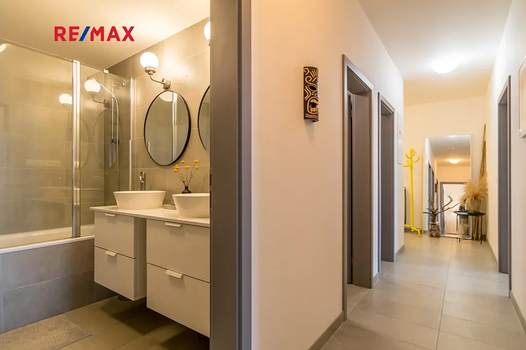 - lodžie 5,5 m2, koupelna s vanou, 2 umyvadla, samostatné WC, komora/technická místnost