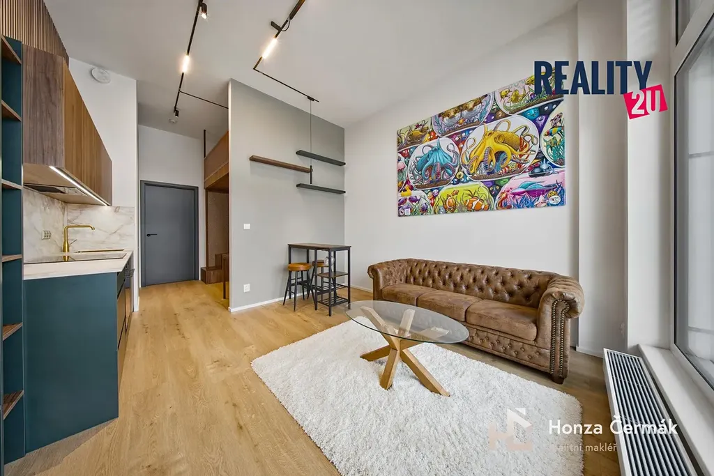 Jednotka s dispozicí 1+kk o obytné ploše 35,2 m² se nachází v přízemí a vyniká precizním zpracováním veškerého nábytku na míru. Každý centimetr prostoru je využit efektivně a vkusně, což doplňují nadstandardní prvky jako jsou předokenní rolety pro dokonalé soukromí i tepelnou pohodu. Interiér kombinuje moderní design s praktičností, což dokazuje například spací patro s kvalitní matrací nebo velkorysé pracovní místo pro dvě osoby umístěné pod ním.