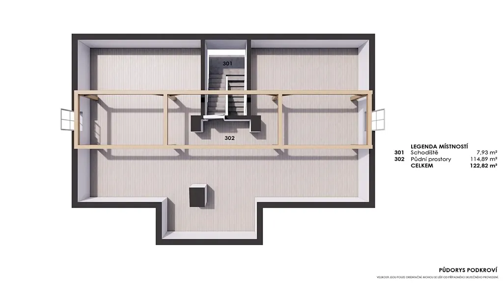 Dům je zároveň vhodný jako klasické rodinné sídlo pro větší rodinu nebo dvougenerační bydlení. Současná dispozice (4+1 v přízemí a 4+kk v patře) nabízí komfortní oddělení dvou domácností při zachování soukromí. Podkroví s dostatečnou světlou výškou umožňuje další rozšíření obytné části.