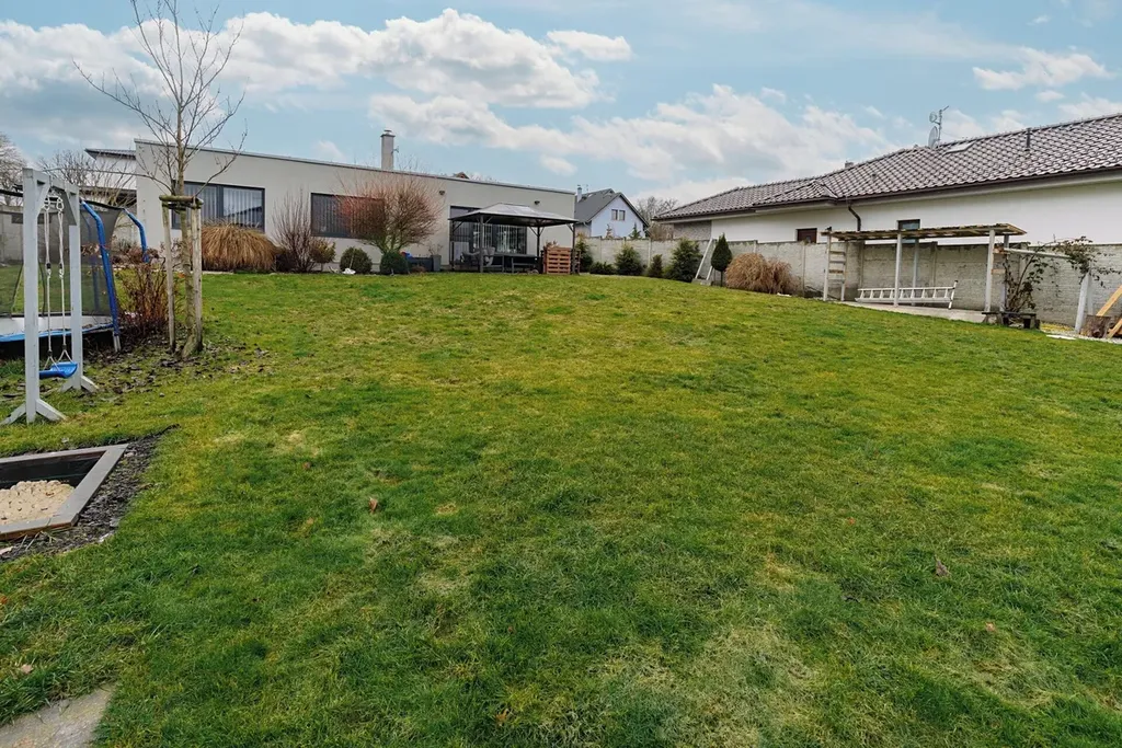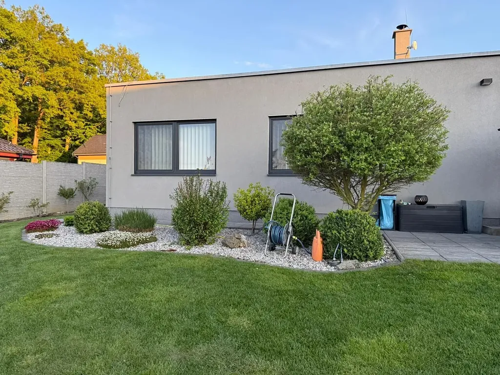 Moderní nízkoenergetický rodinný dům s fotovoltaikou, zabezpečením, krásnou zahradou a vynikajícím dopravním napojením představuje ideální rodinné bydlení bez kompromisů.