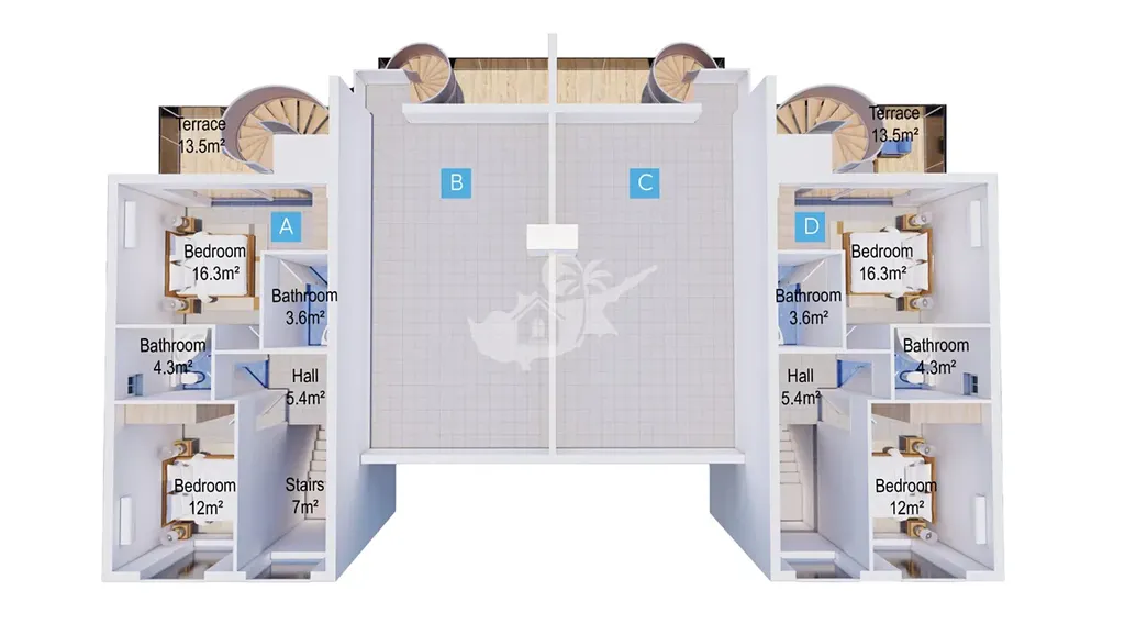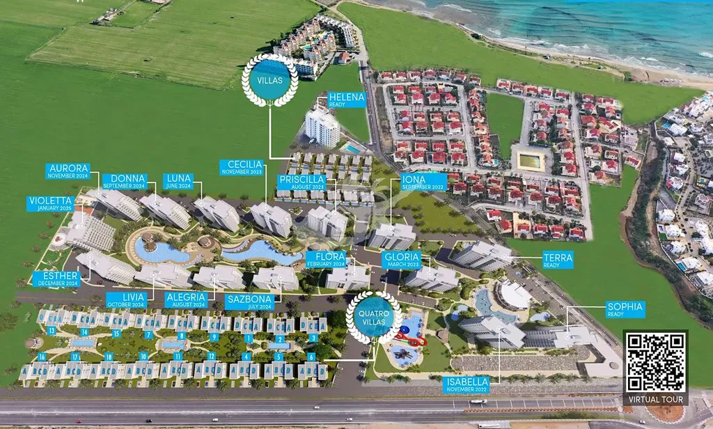 Vily 3+1 mají tři patra , čtyři koupelny , velká střešní terasa kde se da postavit pergolu , gril a jaccuzi. Vše se nachází 300m od pláže na Kypru. Součástí projektů bude i luxusní jacht klub. K vilám náleží i vlastní bazén. Vedle je skvělý aquapark, je to opravdu vynikající investici na pronájem a uložení peněz.