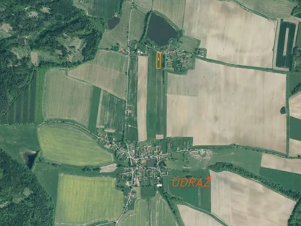 Předmětem dražby je pozemek o výměře 4 328 m2 v jihočeské vesnici Údraž, část obce