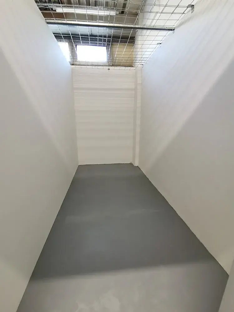 Nově vybudovaná samostatná kóje o ploše 8 m2 (šířka cca 190 cm; délka cca 380 cm, výška 270 cm), vhodná jako osobní nebo menší podnikatelský sklad.
