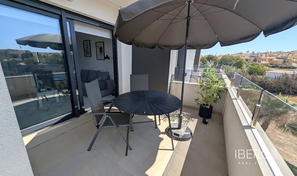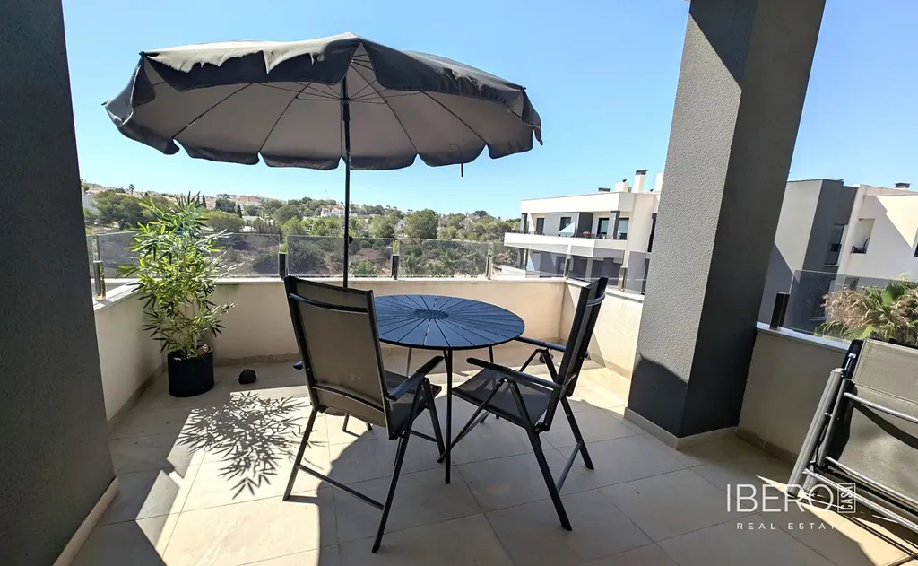Villamartin Pau 26 Corner Top Floor Modern 2 bed 2 bath Penthouse for sale with panoramic views of the countryside and to the communal pool and Gardens located in Amanecer VI with secure parking and lockup storage room.