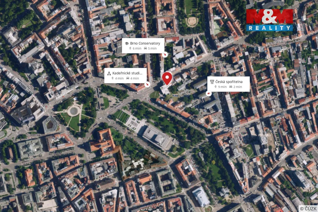 Z bytu se dostanete pěšky do úplného centra Brna do pěti minut.