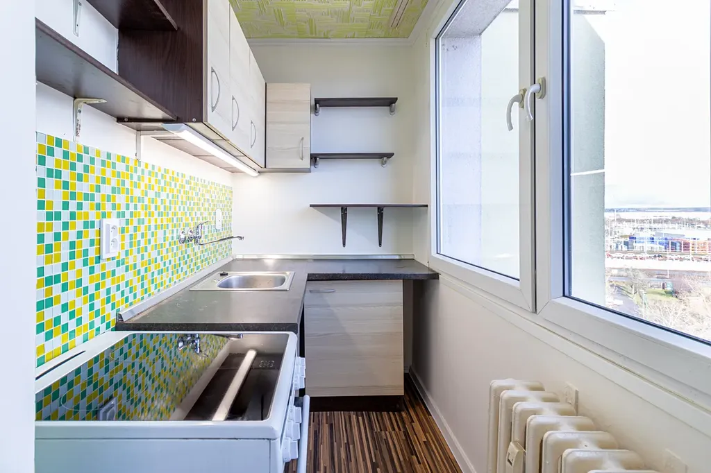 Mám pro vás bytovou jednotku o dispozici 1+kk o podlahové ploše 25 m2. Byt je v osobním vlastnictví a nachází se v 6. patře osmipatrového panelového domu. Byt disponuje moderní kuchyňskou linkou. Po celém bytě je položené moc hezké lino. Byt nemá balkon.