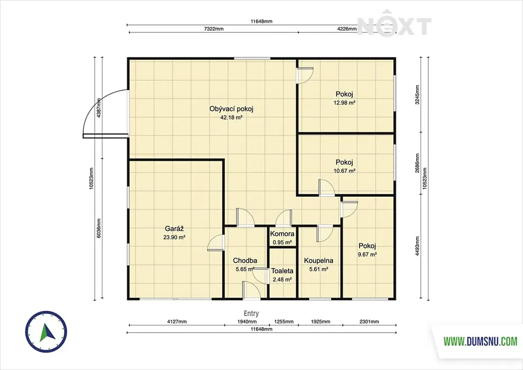 Dále zde naleznete samostatnou toaletu a moderní koupelnu vybavenou vanou i sprchovým koutem. K dispozici jsou také tři samostatné pokoje, které mohou sloužit jako ložnice, dětský pokoj nebo pracovna či studovna. Součástí domu je garáž a spíž, která poskytuje dostatek úložného prostoru.
