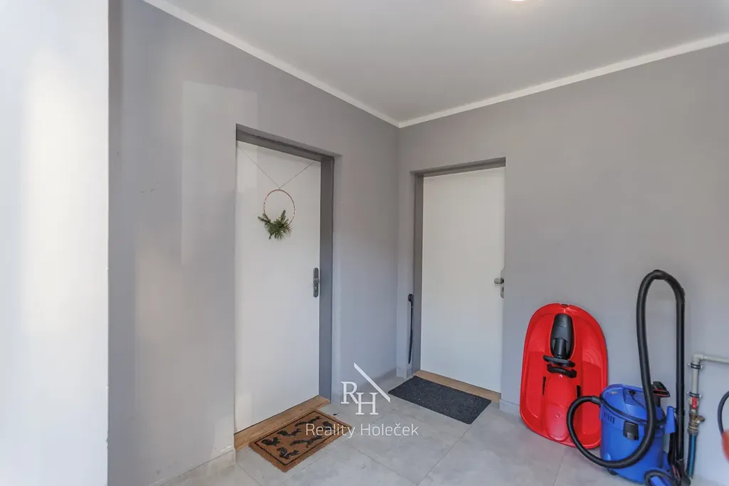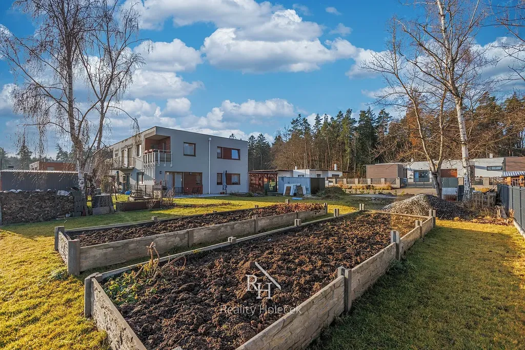 Součástí je zahrada o 677 m², na které vytvoříte místo, kde mohou děti bezpečně běhat od jara do podzimu. Terasa je dokonalá pro letní večery, obědy venku nebo posezení s přáteli. A pokud toužíte po zázemí venku, je tu už příprava na zahradní domek. A kdyby vás lákal bazén – nic tomu nebrání.
