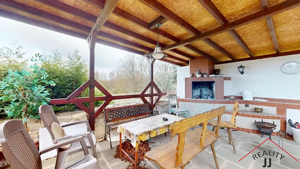 Součástí nemovitosti je velký dvůr s hospodářskými objekty(stodoly, dílna..),s dětskými prolézačkami, s pergolou, s okrasnou zahradou se skalkou, velkým vnitřním bazénem a venkovním jezírkem Za jezírkem se dále rozprostírá zahrada o rozloze 630 m² a dále směrem k malé říčce velký pozemek-travní porost, který sloužil jako výběh pro ovce (897 m²). Dům se nachází v okrajové části vesnice,v naprosto klidné zóně,obklopené zelení,nedaleko od lesa. Lokalita poskytuje dokonalé prostředí pro odpočinek, s minimem sousedů a krásnou atmosférou polosamoty.